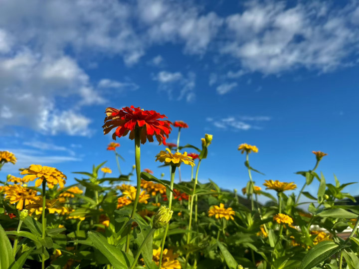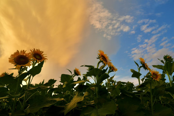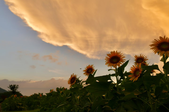 凌晨四点的霞光,最为绚烂和恢宏,云蒸霞蔚,万道光芒。云层在凝聚在等待,在积蓄在破发,就在那瞬息之际,一轮旭日喷薄而出,地上的向日葵也开出了万千的太阳。