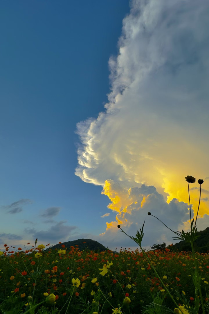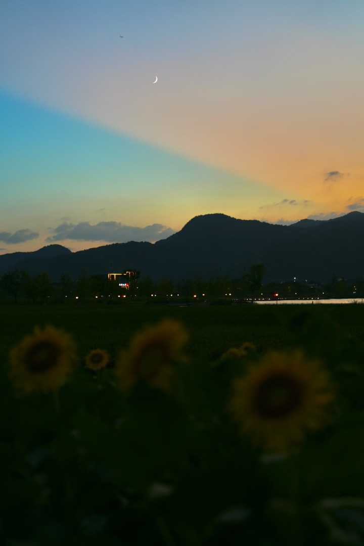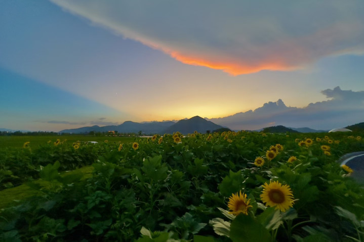 (铜鉴湖昼夜交界的花海实盘配资炒股。方自镛/摄影)